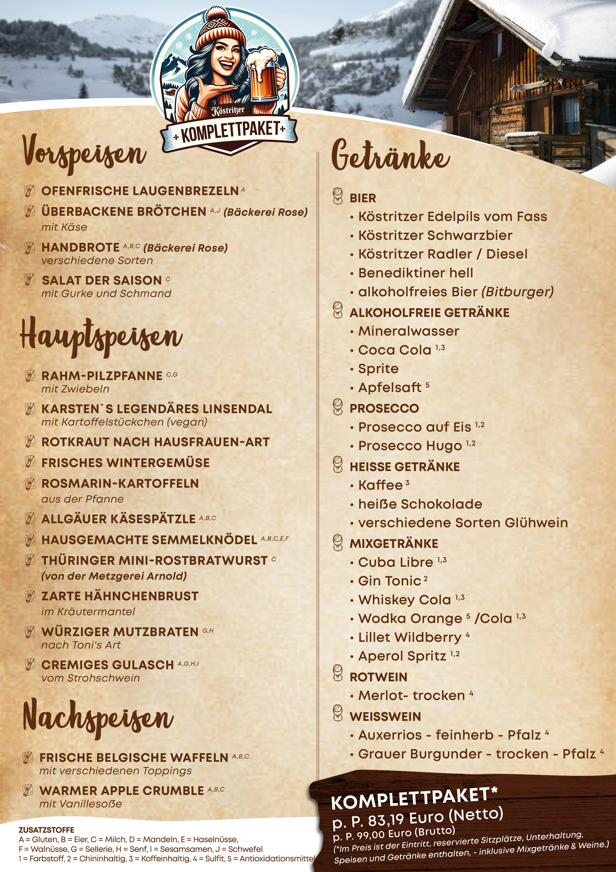 (*im Preis sind der Eintritt, reservierte Sitzplätze, Unterhaltung, Speisen und Getränke enthalten, - inklusive Mixgetränke & Wein)